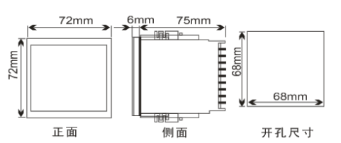 1、外型尺寸:72mm(寬)×72mm(高)×80mm(深)